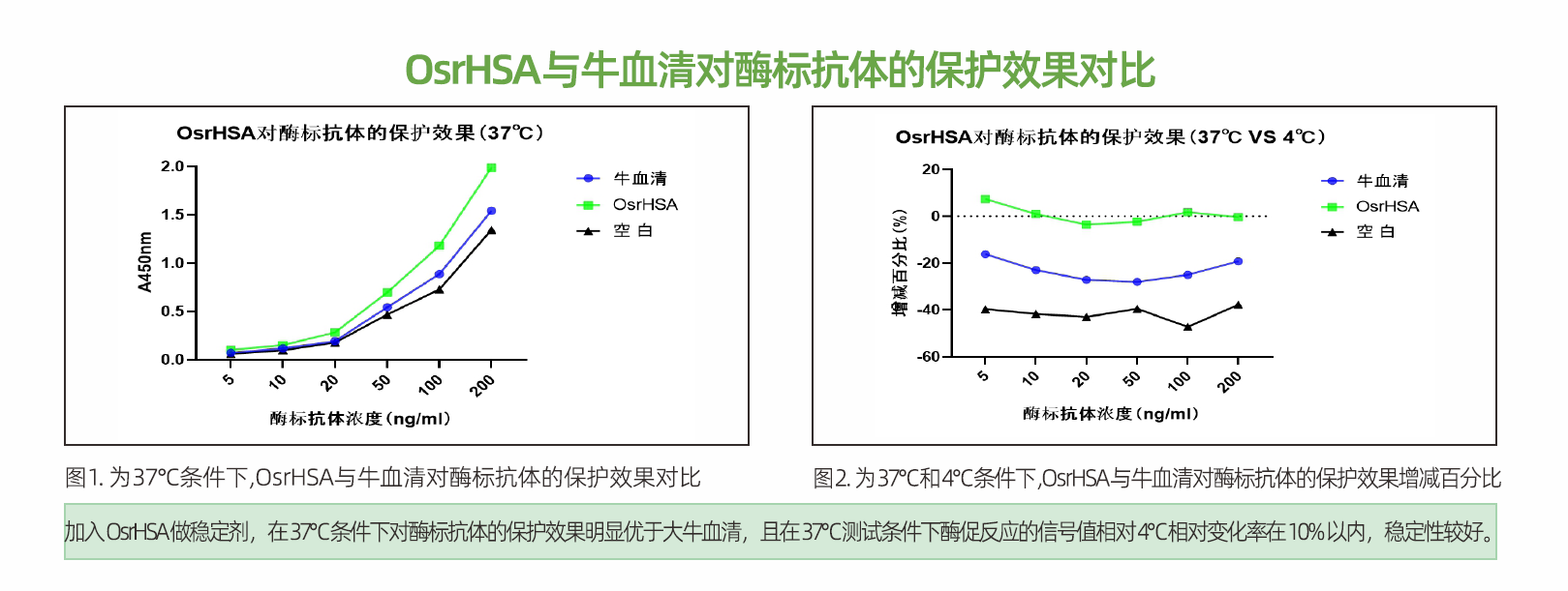 但BSA主要是通过牛血浆提取,血清中残留的IgG,蛋白酶,激素,脂肪酸等物质,不论经过多么精细的提纯工艺,都会因为白蛋白本身作为一个结合蛋白有微量的残留,在一些血液样本,尤其是微量样本检测时,无法达到理想的灵敏度和精准度。