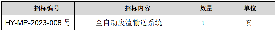 太阳成集团tyc33455ccwww拟对太阳成集团tyc33455ccwww全自动废渣输送系统项目进行公开招标。