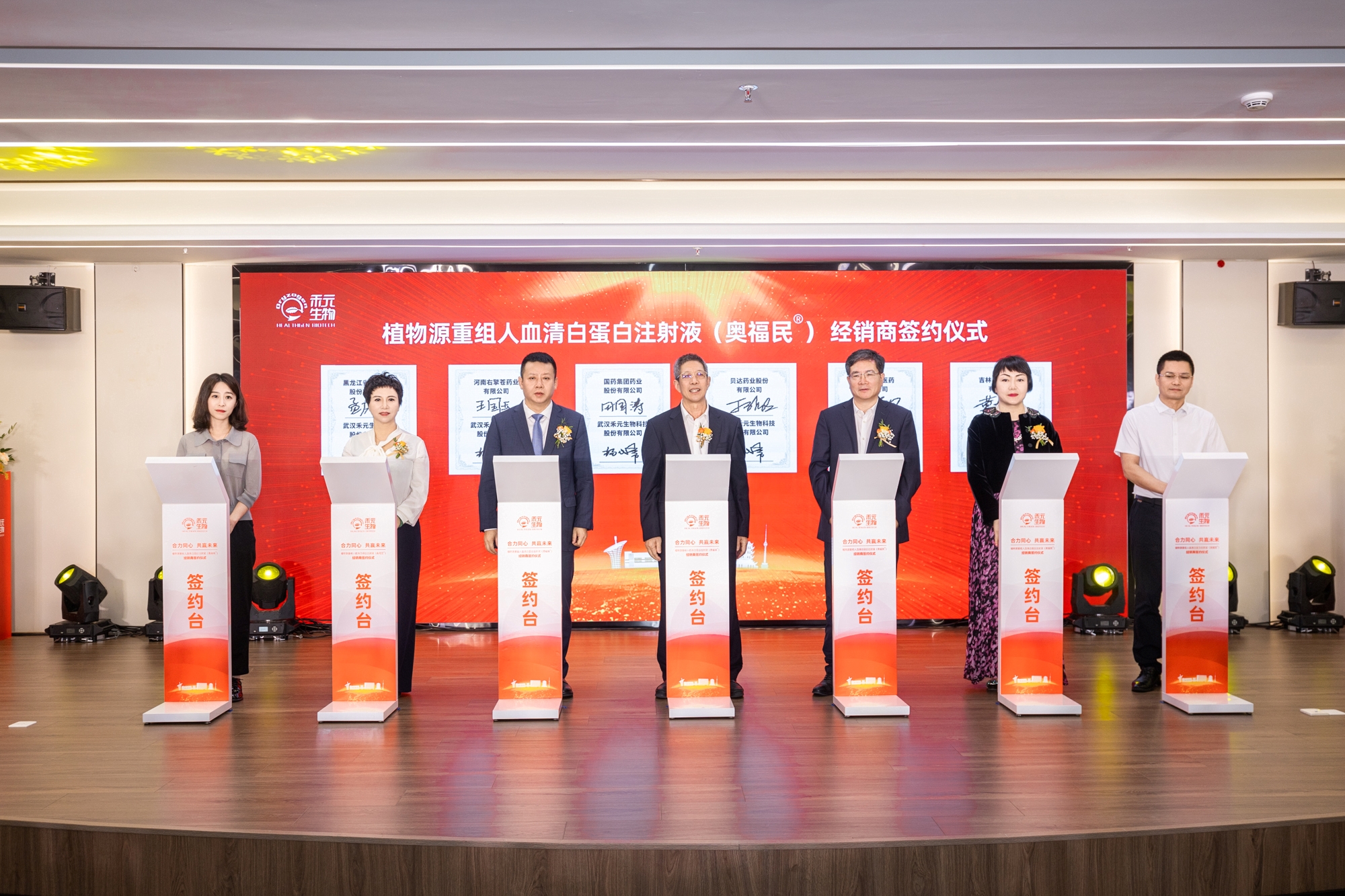 9月29日,太阳成集团tyc33455ccwww研发的全球首个植物源重组人血清白蛋白注射液(商品名:奥福民®)全国经销商签约仪式暨首次全国经销商大会在武汉圆满举行。